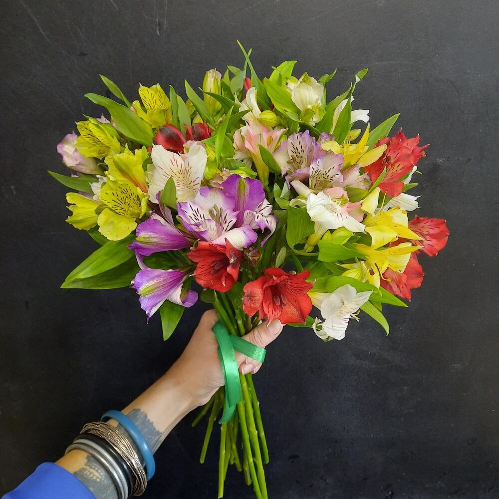Лента атласная - 2 шт.альстромерия микс - 17 шт.